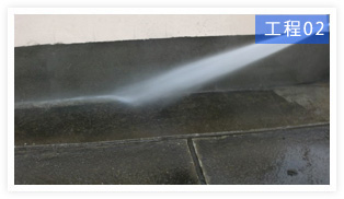 泥・苔などの付着物を高水圧で落として下地を施工可能な状態にします。