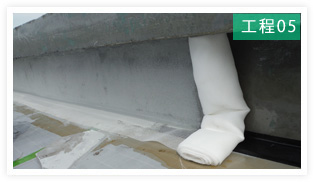 メッシュ状のクロスを貼り付けることで、地震などによるウレタン塗膜の裂けを防止します。