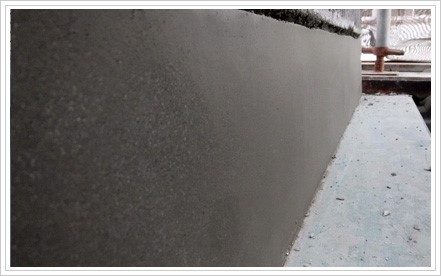 厚み20mmほど左官したところです。 硬化後に各部シーリング防水を行います。