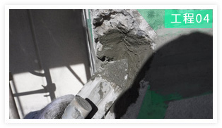 穴あけ部を清掃後、樹脂を注入して空洞を埋めていき、強力に接着させます。