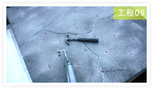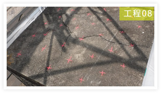 クラックを調査マーキングして、Uの字の溝を掘っていきます。